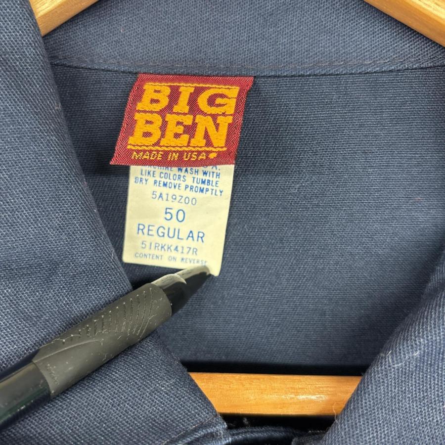 古着 ビッグベン BIGBEN USA製 長袖つなぎ オールインワン ワーク 作業着 ワンポイントロゴ フルジップ 大きいサイズ 50 ネイビー メンズ